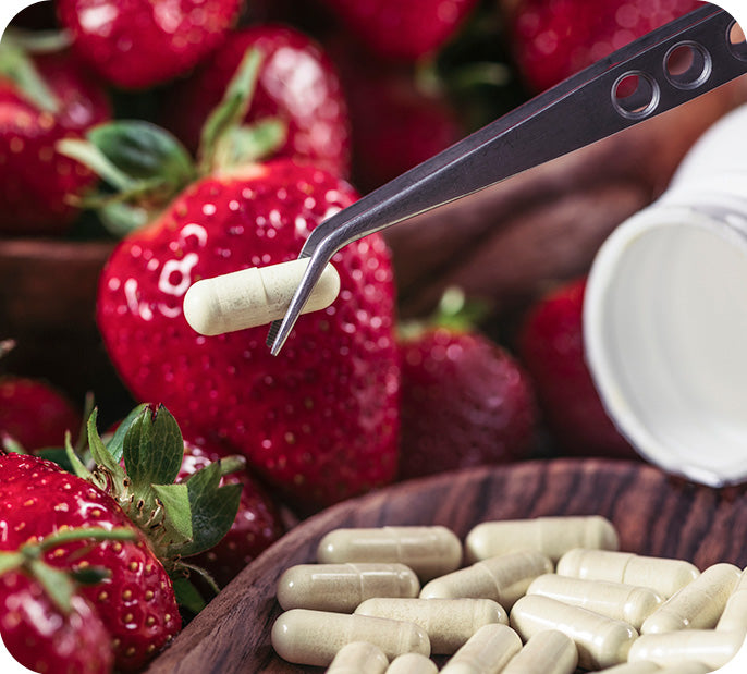 Fisetinis a flavonol found in certain fruits and vegetables, such as strawberries and persimmon. Like quercetin, it was one of the first senolytic ingredients ever discovered, and boasting one of the most impressive bodies of research of all senolytics. Fisetin has been strongly correlated with supporting body tissues by helping with pruning of stressed cells.