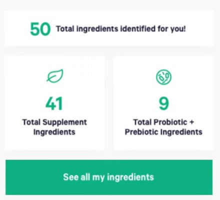 Supplement and probiotic recommendations selected from over 200 ingredients in your precise dosage needs.