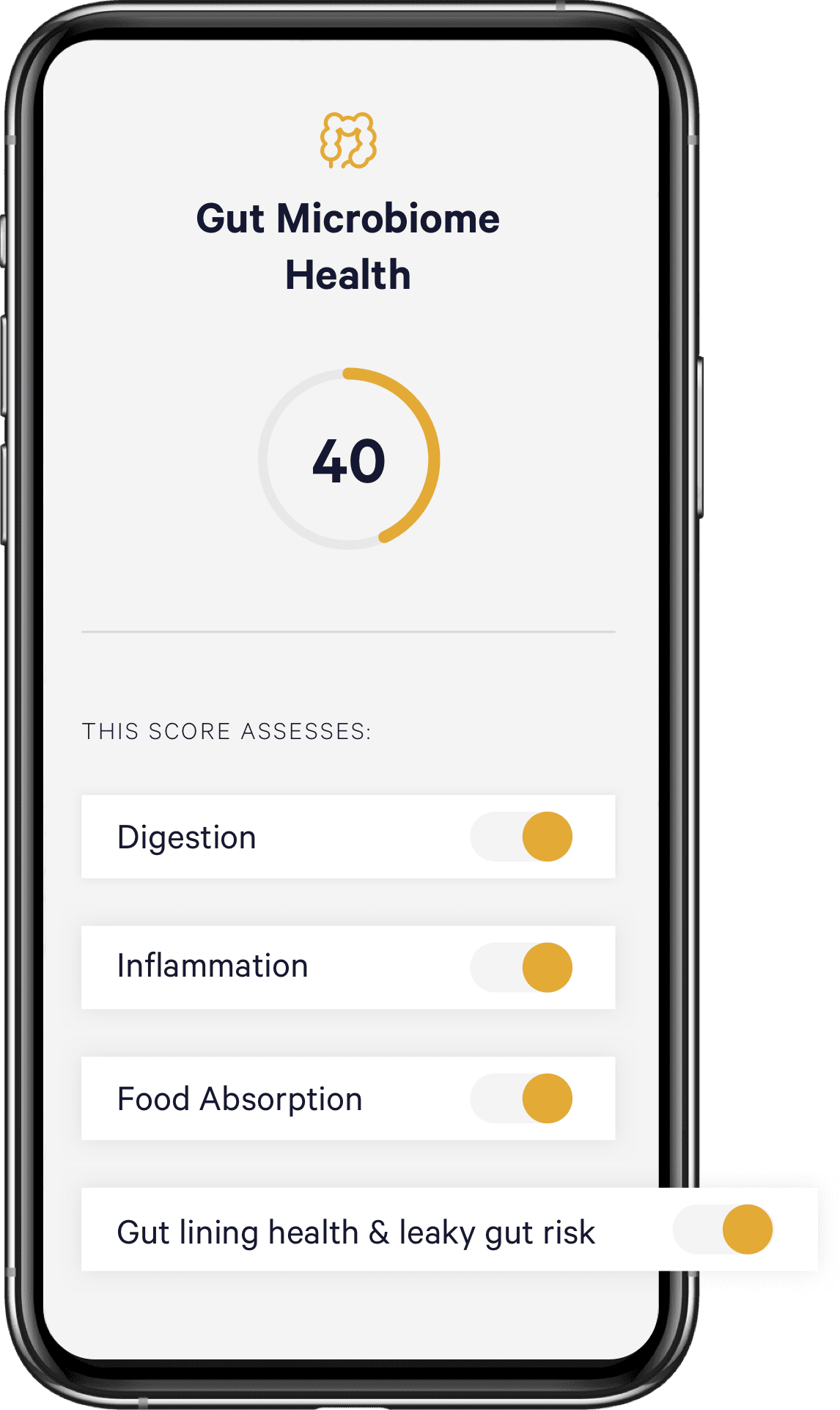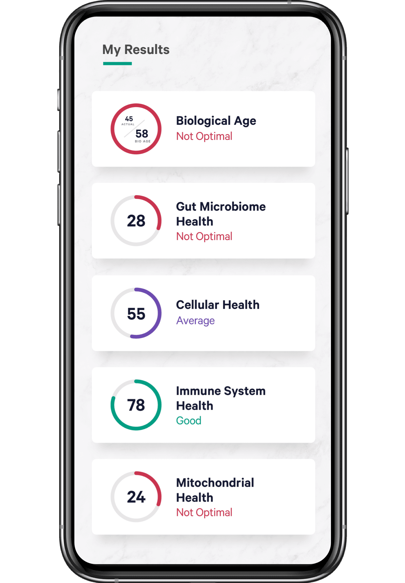 我们的健康智能™ 测试超越了肠道智能™,可以分析您的肠道微生物群和消化系统健康如何帮助或损害您身体中保持健康的其他有益功能,包括您的免疫系统、细胞健康以及身体内部的衰老情况。